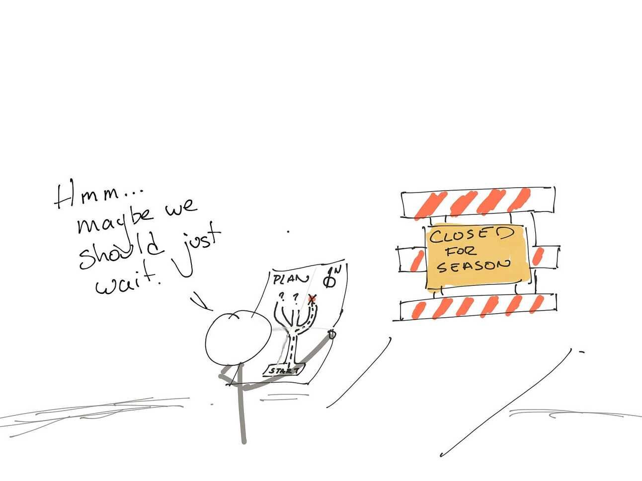 In those cases the biggest risk is the risk of the effort just kind of floundering and eventually sputtering to a halt. Not even actually failing properly, more like falling over half-way through. And our natural, deeply-ingrained desire to cling for life to a carefully pre-crafted plan will all but ensure that this is what happens.
