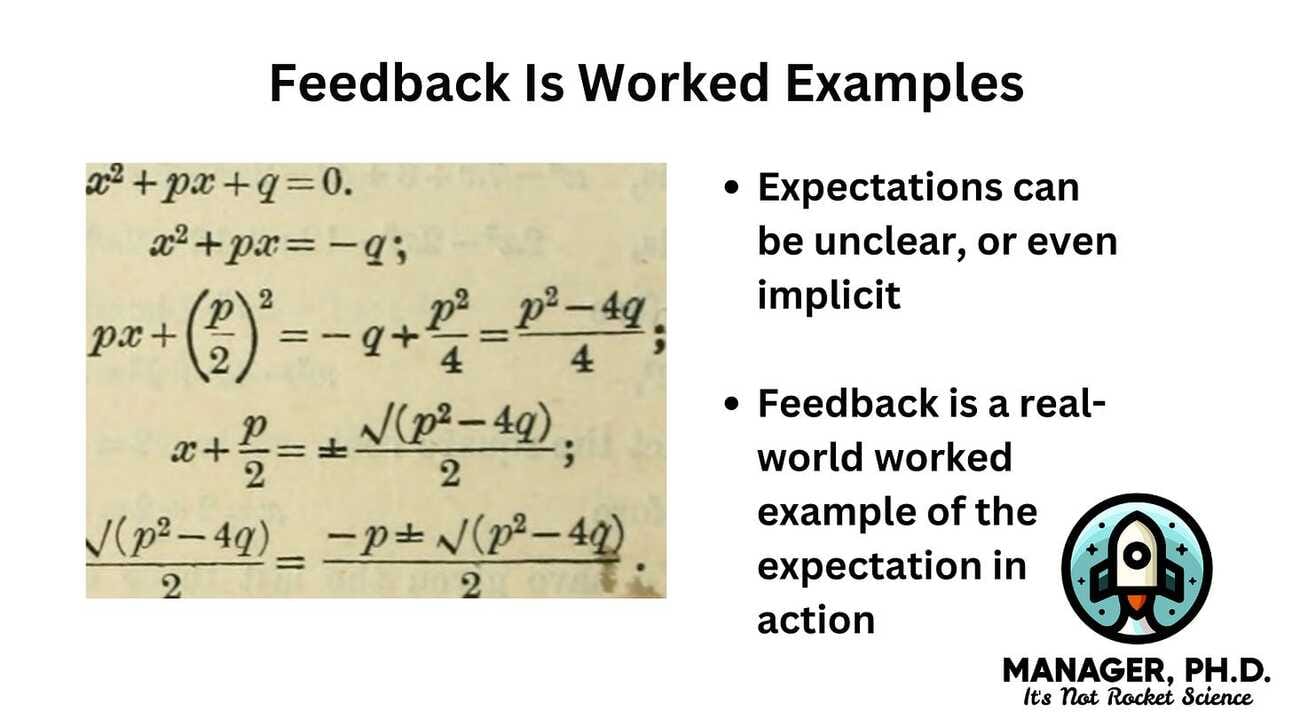 It’s possible the worked example being provided is less relevant to you than the person giving it intended. As you process the feedback example data, the feedback might well be a bit off-track. If people sense that there’s a problem, there usually is, but people are often not great at diagnosing the cause of a problem right in the moment. Consider the feedback more broadly.